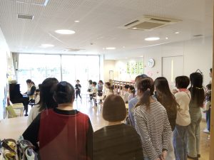 ぞう組では、自分たちの等身大の絵を描くことにもチャレンジ!お母さんの協力でうまく自分自身の形をトレースできていたようでした。くま組では、歌のお稽古や作品の作成に熱中している姿を披露できて、ちょっと自慢気なおともだちもいたようです。