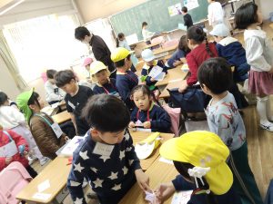 2/10(火)高松小学校との交流イベントで、小学校1年生の「おみせやさんごっこ」に年長クラスが招待されました。
