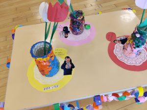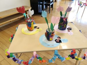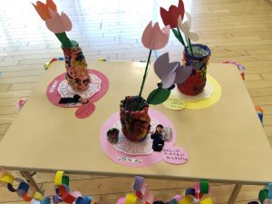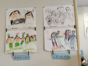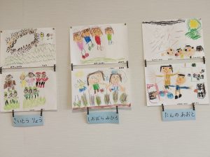 当日は、9時30分から11時30分までの間に、保護者の皆さまとご家族が大勢、来園して子どもたちの作品を鑑賞してくれました。