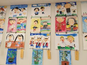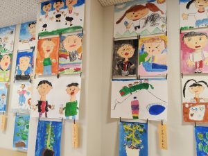 子どもたちも自分たちの作品がきれいに展示されて、とても満足だったようです。