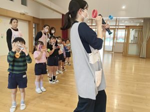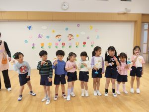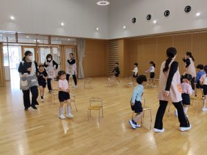 椅子取りゲームや引っ付き歌遊び、この人だーれ?、先生たちからのストロー飛行機プレゼントなど、みんなで一緒にたくさん遊んで楽しかったですね。