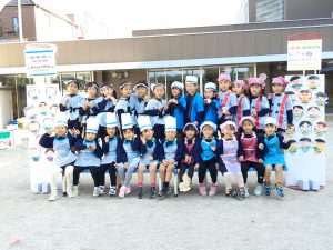 お日様の良くて照った日でしたので、園児たちは帽子をかぶっていて丁度良い感じでした。山下農園は住宅地にある農園で、その一画を予約し、10時から保護者の皆さまと園児とで芋ほり開始!2クラスなので、20分ほどでみなさん大きなサツマイモを掘り、満足げな様子で芋ほりは終わりました。
